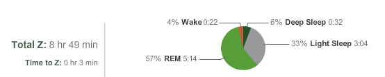 But you will also have your personal health cloud, which will shift the balance of power from the medical establishment to you. Your personal health cloud may include your running cloud, your sleep history cloud, you blood cloud, your genomic cloud, and, ultimately, your human biome cloud, and more. (For more info on this trend, see Larry Smarr’s 10-year quest for quantified health. And, yes, Larry’s the father of my former partner-in-crime, Joseph Smarr, and he has inspired me to get my own personal health clouds up and running. More on that in an upcoming post.) BTW, do you know how much of your typical night of sleep is comprised of the mysterious, dream-filled, learning-and-memory-enhancing REM phase? I do: